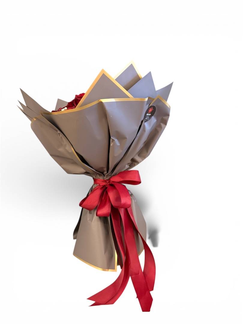 25 adet kırmızı ithal gül Kaliteli yeşillikler Özel süsleme malzemeleri