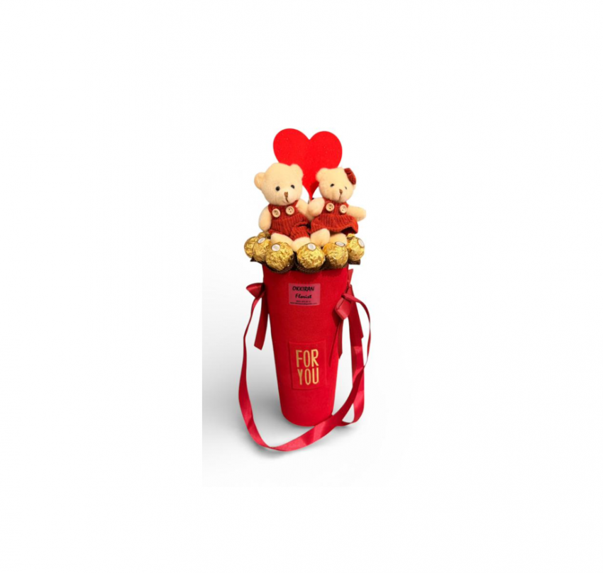 2 adet 10 cm peluş ayı 11 adet ferraro rochers çikolata Özel süet silindir kutu çanta. Kalp çubuk Ürün KKTC Sınırları içerisinde Sipariş verdiğiniz adrese Kargo ile gönderilmektedir. Tahmini teslimat süresi 2-4 iş Gündür