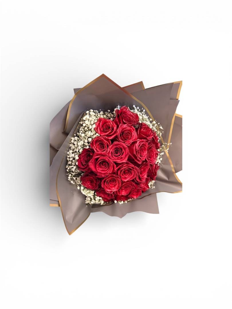 25 adet kırmızı ithal gül Kaliteli yeşillikler Özel süsleme malzemeleri