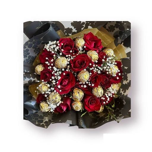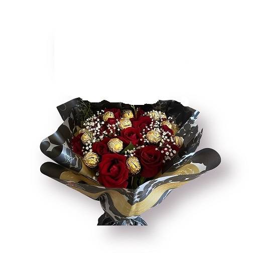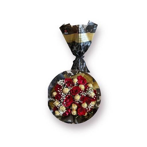 15 adet ithal kesme gül 15 adet ferraro rocher çikolata kalitesli yeşillik ve süsleme malzemesi ile hazırlanmıştır. stok durumuna bağlı olarak süsleme renginde değişiklik olasıdır.